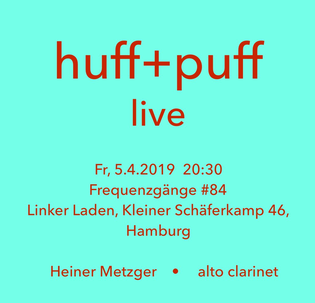 Heiner Metzger lebt in Hamburg, improvisiert mit einem Tisch und Objekten in experimentellen Ensembles, im Stark Bewölkt Quartet, mit Gregory Büttner, Michael Maierhof, Birgit Ulher. Mit Klarinetten, Saxophon, soundtable und Synthesizer konzertierte er im TonArt Ensemble, in Duos mit Hannes Wienert, Thomas Beck, Andreas Metzler, VIS, Tyrrn, Timeta, modulares Trio, Weltmusikensemble, tentacle tubes. Der soundtable ist eine elektroakustische Tischinstallation, mit der Klänge von Objekten und dem Tisch verstärkt werden. An diesem Abend spielt er Klarinette und stellt seine neue Online Veröffentlichung huff+puff vor. www.vincentglanzmann.ch www.heinermetzger.de/