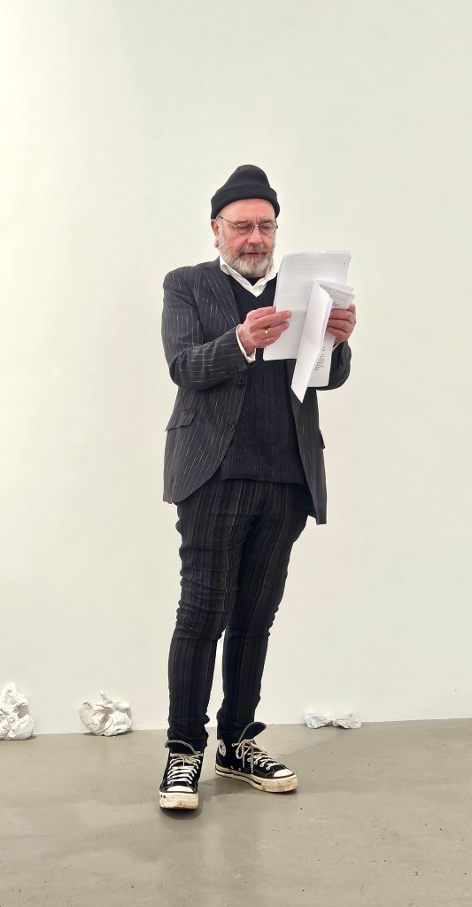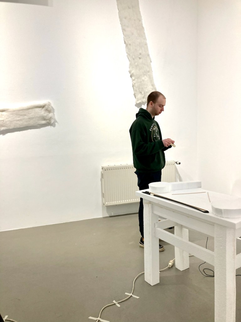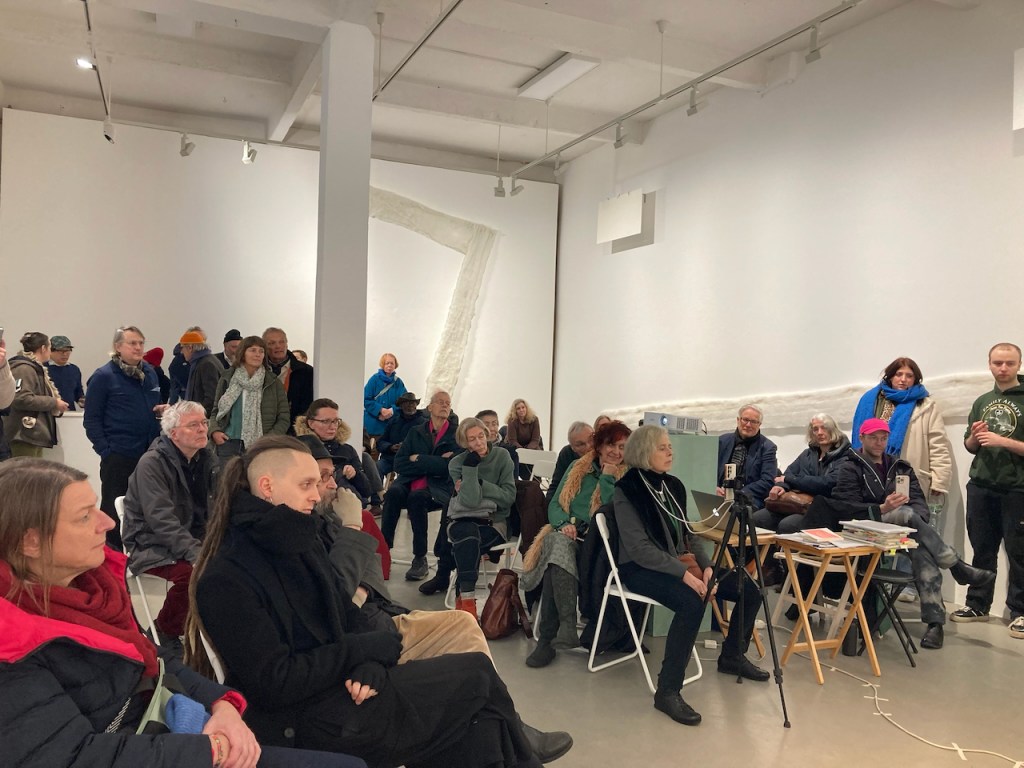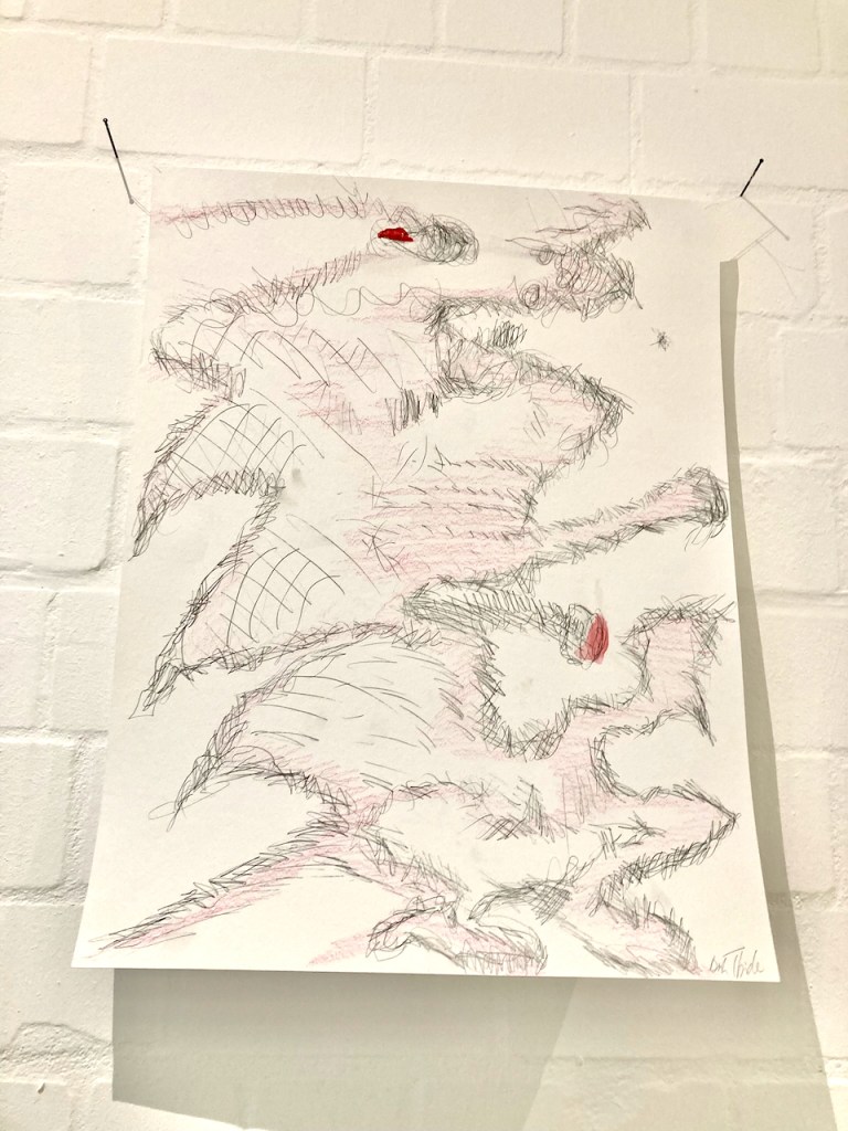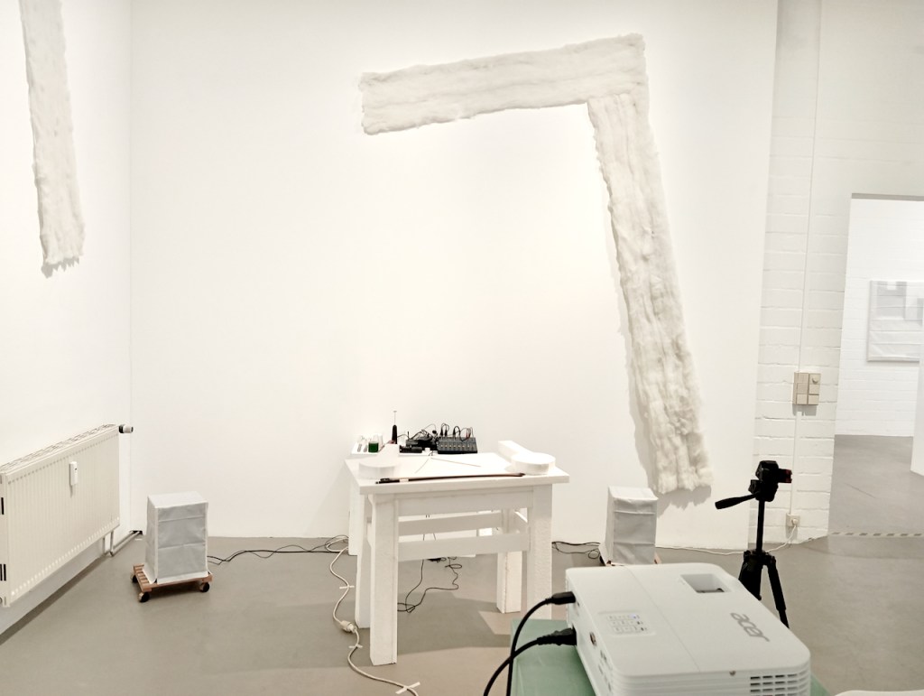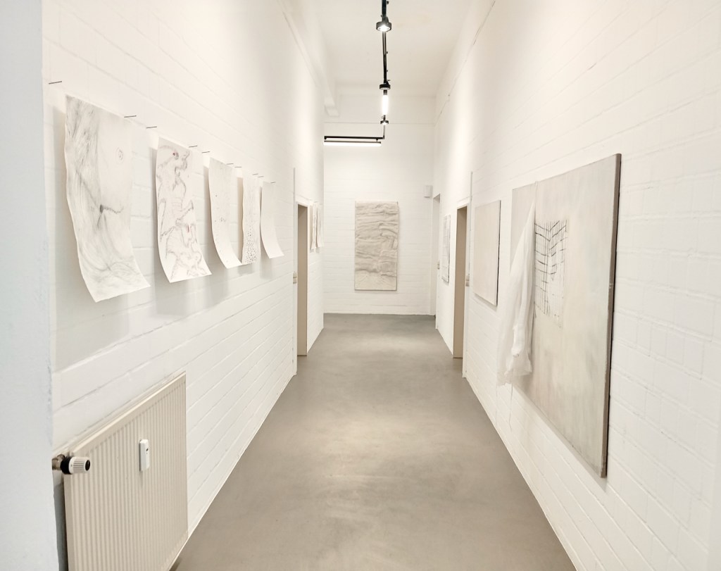 Eingang in die Ausstellung “ was weiß weiß…?Flur zum Ausstellungsraum • links Zeichnungen von Dirk Thiele, rechts Bilder von Judith HamanMasken Zeichnung Nr. 1 • Dirk ThieleMasken Zeichnung Nr. 2 • Dirk ThieleMasken Zeichnung Nr. 3 • Dirk ThieleMasken Zeichnung Nr. 4 • Dirk ThieleMasken Zeichnung Nr. 5 • Dirk ThieleMasken Zeichnung Nr. 6 • Dirk ThieleMasken Zeichnung Nr. 7 • Dirk ThieleMengele haut ab, tut so, als sei er nicht mehr da. 1,4 x 2 m, Öl/Tempera auf Leinwand Judith Haman 2012Fox • 0,8 x 1,3 m Öl/Tempera auf Leinwand • Judith Haman 2005Room without stable hand • 0,6 x 0,9 m Öl / Tempera auf Leinwand, Duschvorhang Judith Haman 2019Padding room without stable hand • 0,8 x 2 m Öl / Tempera auf Leinwand, Folie, Watte Judith Haman 2025Weiß • 0,8, x 0,6 Öl / Tempera auf Leinwand, Judith Haman 2005100 Fotografien • Dirk Thiele 2026100 Fotografien • Dirk Thiele 2026100 Fotografien, schwarze Maske, Maskenfragmente (Gips) • Dirk Thiele 2026 Videostill – WEISS Lorenzo Galizia Thiele 2023Eröffnung Judith Haman • die weiße Bille – QuelleRauminszenierung • Wattestreifen Judith Haman 2026Rauminszenierung • Wattestreifen Judith Haman 2026Rauminszenierung • Wattestreifen Judith Haman 2026Rauminszenierung • Wattestreifen Judith Haman 2026 foamtable • Styropor Heiner Metzger 2026WEISS Videostill Lorenzo Galizia Thiele Lorenzo Galizia Thiele foamtable • Konzert Heiner Metzger 14.2.26foamtable • Konzert Heiner Metzger 14.2.26Lecture Michel Chevalier “In der weißen Zelle“ von Brian O’Doherty (1976) – Eine Fortsetzung der Kritik 14.2.26Lecture Michel Chevalier “In der weißen Zelle“ von Brian O’Doherty (1976) – Eine Fortsetzung der Kritik 14.2.26Performance Dirk Thiele “Die Masken der weißen Dämonen“Königin-Pasteten, vegan und ganz in weiß von Dirk Thiele Audience „was weiß weiß…? 14.2.26 Künstlerhaus Bergedorf
